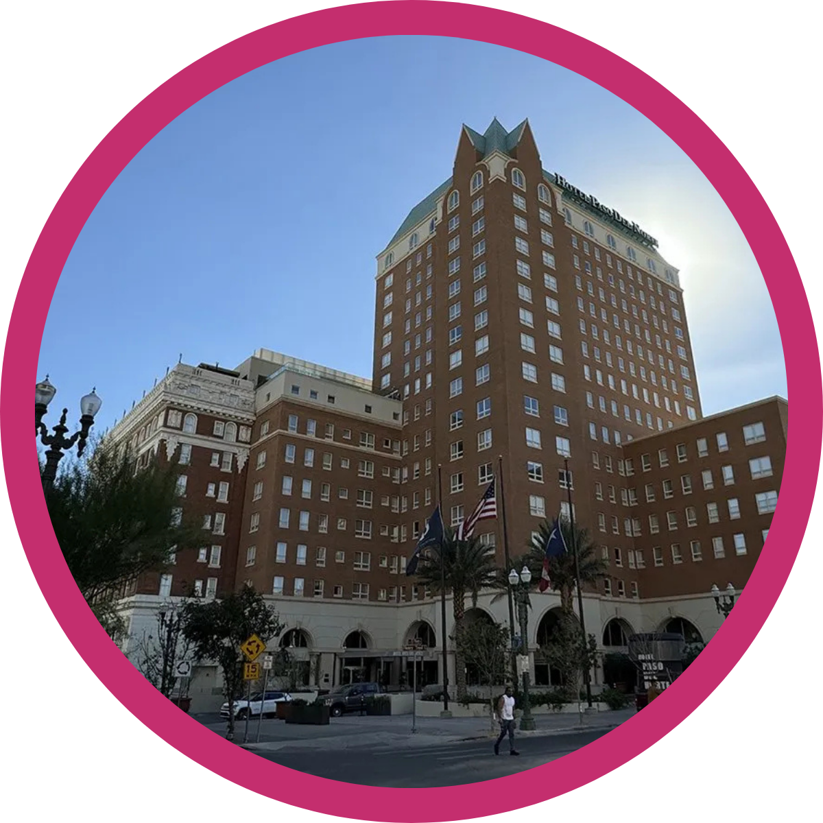 ¡Aquí es donde se preparará el novio! El Paso del Norte es un hotel de lujo de primer nivel en el centro de El Paso, que fusiona las culturas mexicana, texana y nativa americana para crear una experiencia verdaderamente única. Con vistas panorámicas a las montañas Franklin y a solo unos pasos de la frontera con México, este hotel del suroeste de Texas se encuentra en el corazón de todo lo que la zona tiene para ofrecer. A 5 minutos en auto o 12 min caminando, del lugar de la boda.